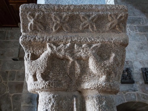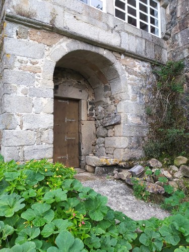 Pero hemos elegido la opción caminera, por lo que abandonamos Muxía por carretera pero al salir del casco urbano, pasada la playa, nos desviamos a la izquierda para seguir durante algunos metros la costa por la plataforma de madera que bordea el arenal. A continuación nos internamos en el bosque por un bonito pero duro camino ascendente que nos lleva a la aldea de Chorente. Desde aquí salimos por asfalto pero, después de girar a la izquierda y llegar a unos chalets alineados a nuestra derecha, el asfalto desaparece dejando paso a un camino de tierra que nos deja casi de inmediato en una sencilla ermita dedicada a San Roque en cuyo tranquilo entorno podremos descansar unos minutos o unas horas. No tardamos en llegar después a la carretera que sube desde Muxía, que tendremos que cruzar extremando las precauciones pues estamos en una curva. Al otro lado, una tranquila carreterita nos ayuda a recorrer la corta distancia que nos separa de unos de los lugares que, por si mismos, hacen que merezca la pena este viaje: nos encontramos en Moraime donde en el siglo XII se levantó un monasterio del que aún se encuentra en pie la iglesia románica de San Xián, que bien merece ser visitada aunque tan solo sea para admirar sus puertas principal y lateral, bellamente decoradas. Uno de los edificios del entorno es ahora un hotel y en las proximidades puede verse también un palomar.