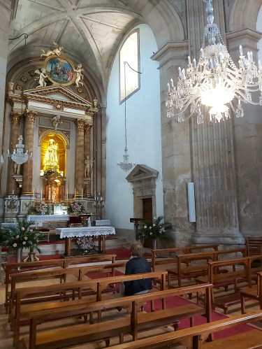 Una vez más regresamos a la combinación adoquines abajo y altos muros laterales. Privados de toda posibilidad de disfrutar del paisaje, no nos queda otra que intentar pensar en las musarañas para evadirnos del constante traqueteo, que es lo único que nos acompaña hasta que vemos ante nosotros una capilla (Nossa Senhora da Lapa) donde debemos girar a la derecha, en ascenso. Hay, sin embargo, que detenerse antes en este punto, pues nos encontramos al ladito mismo del monasterio de San Salvador de Vairão y de su iglesia de San Benito.